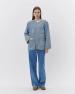 Světle modrá bunda se strukturovanou látkou a kulatým výstřihem.