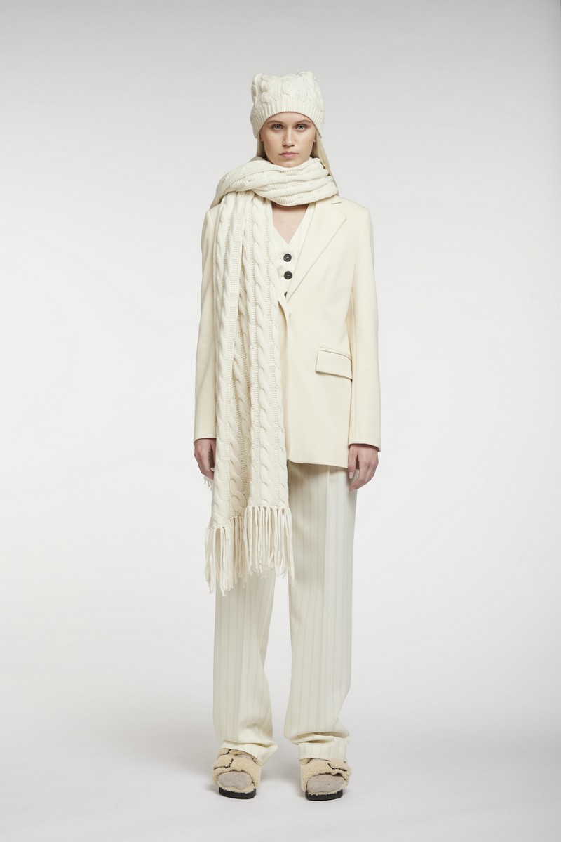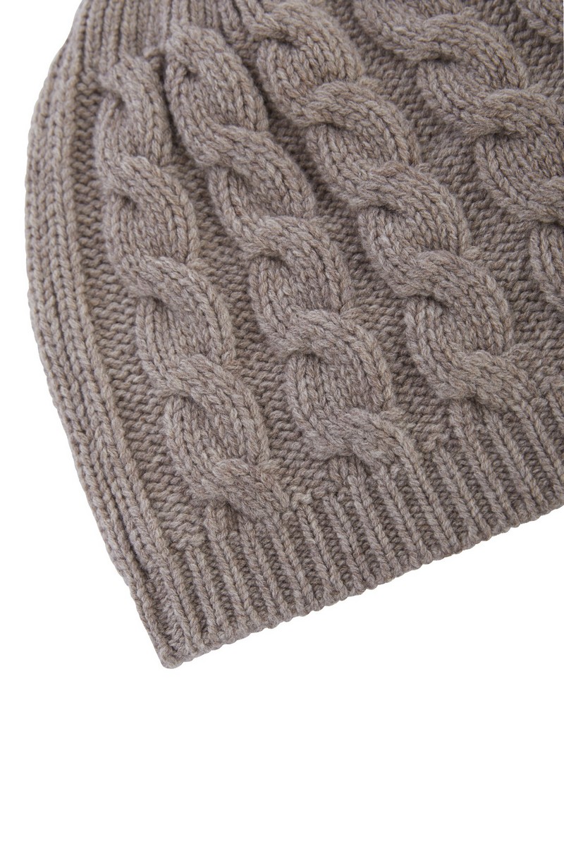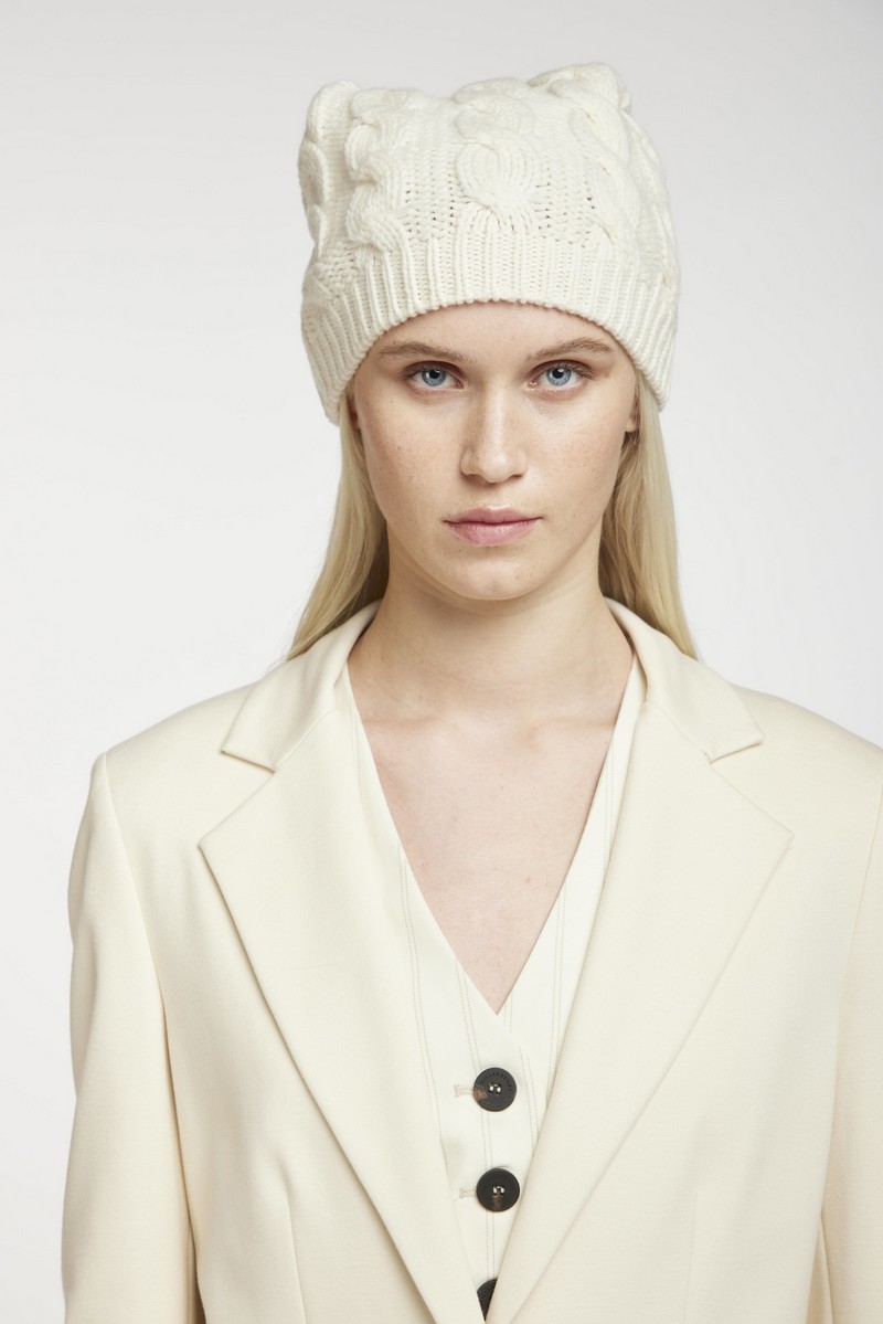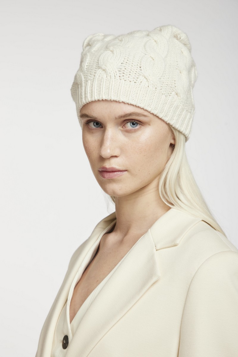 Teplá a měkká vlněná pletená čepice s ozdobným copánkovým vzorem.