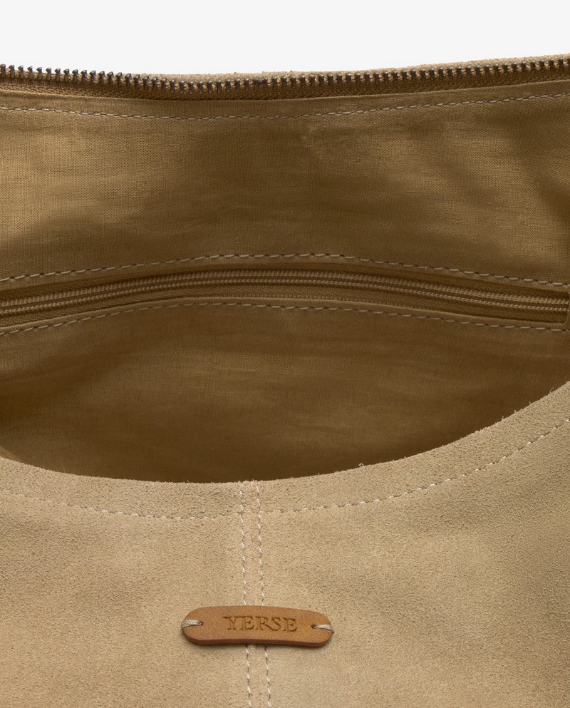 Kabelka Hobo vyrobená ze 100% měkké hovězí kůže se semišovou úpravou. Má bavlněnou podšívku, zapínání na zip a široký ramenní popruh pro pohodlné nošení. Včetně vnitřní kapsy na zip. Rozměry: 51 x 31 cm