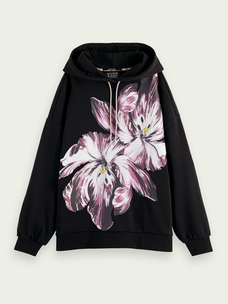 Mikina s kapucí oversized střihu s potiskem po celém obvodu