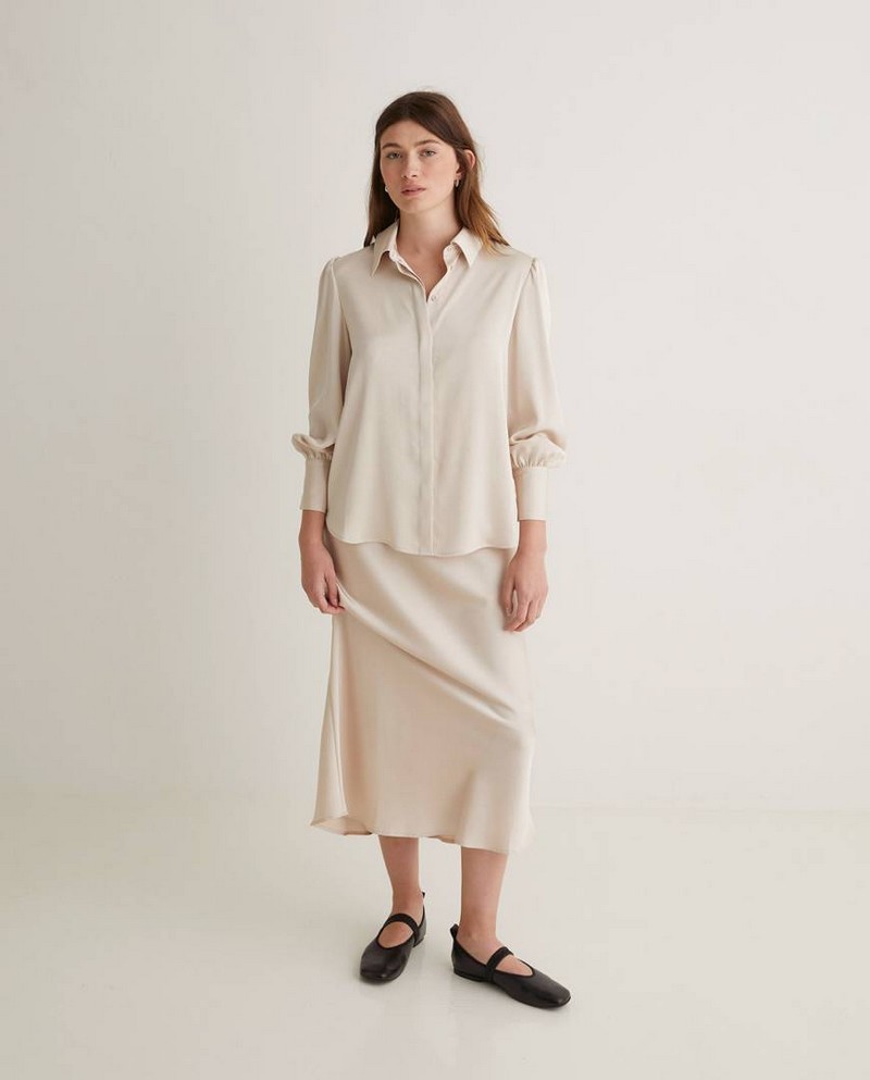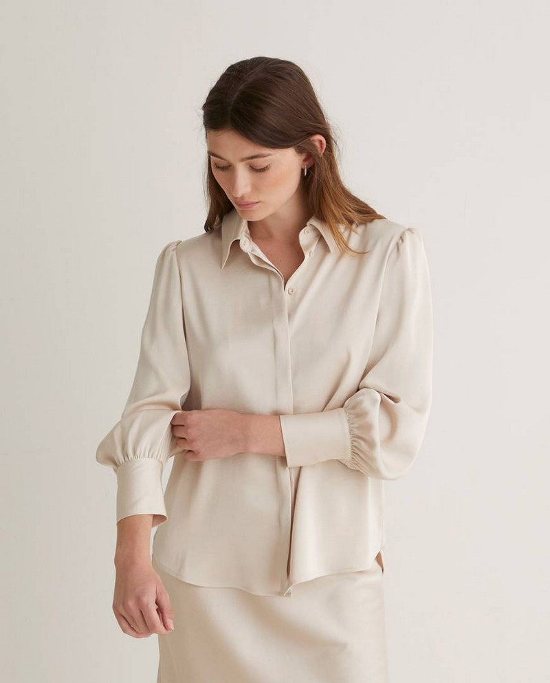 Saténová košile s dlouhým rukávem v barvě  CHAMPAGNE