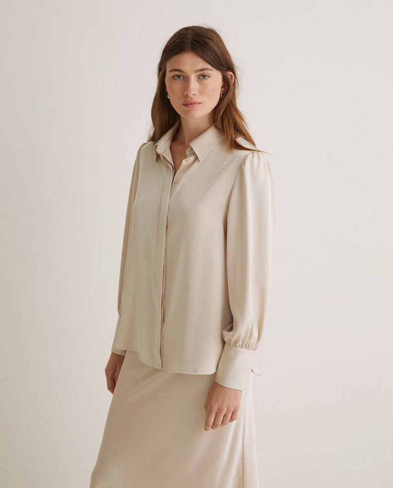 Saténová košile s dlouhým rukávem v barvě CHAMPAGNE