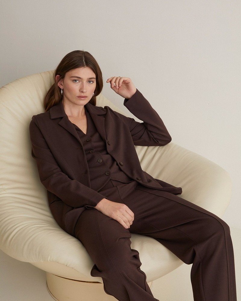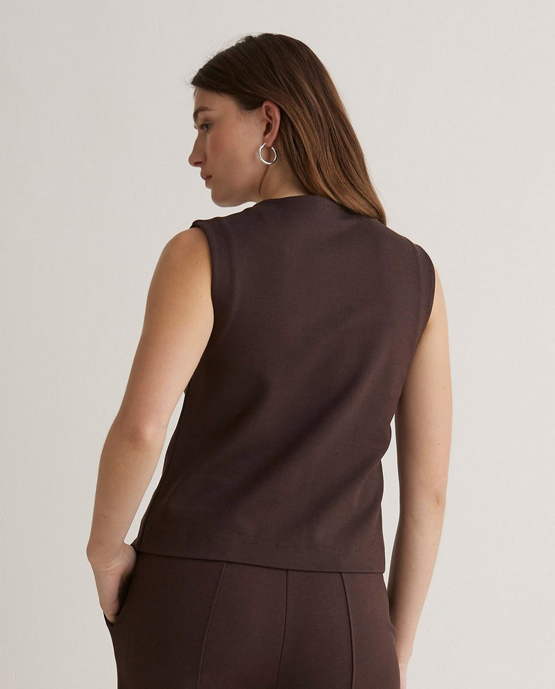 Pletená vesta. Směs viskózy. Výstřih do V. Zapínání na knoflíky.