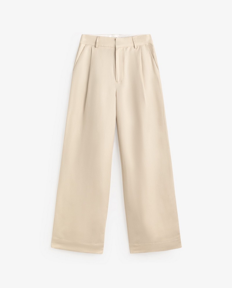 Široké kalhoty v ecru barvě.