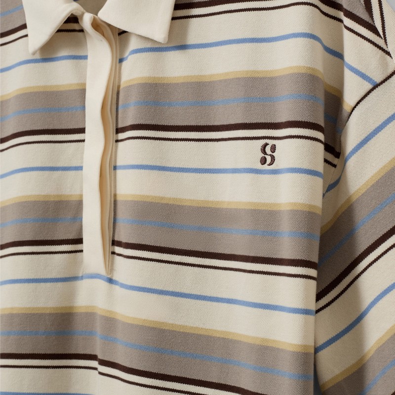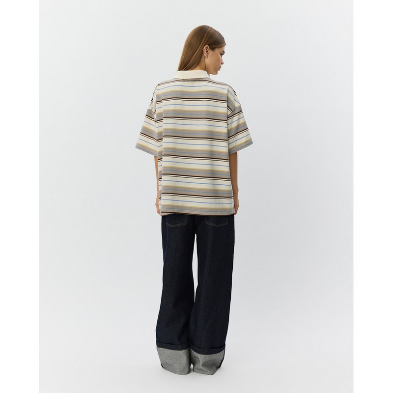 PILSW OVERSIZE PRUHOVANÉ POLO TRIČKO - Bílé pruhované