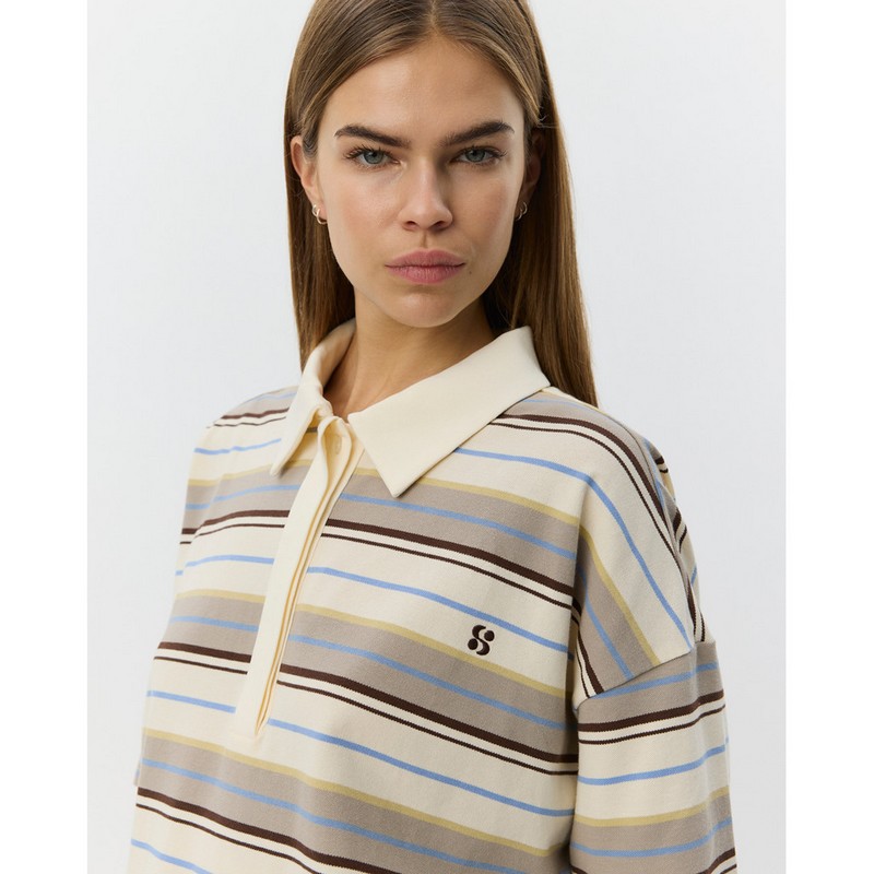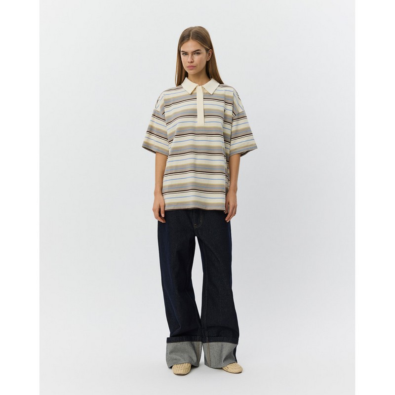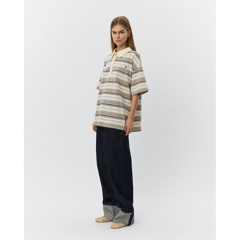 PILSW OVERSIZE PRUHOVANÉ POLO TRIČKO - Bílé pruhované
