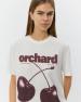 • Velký potisk třešní na přední straně s textem „Orchard“ a „Sweet cherry kidped by the sun 2025“