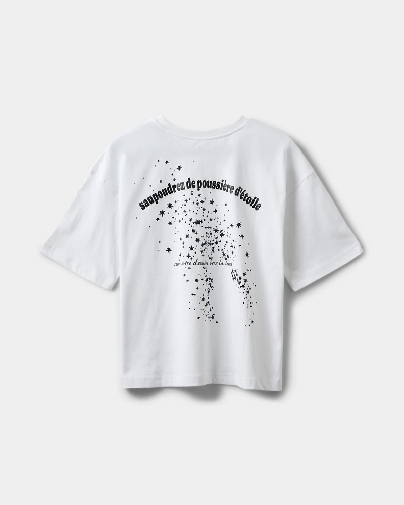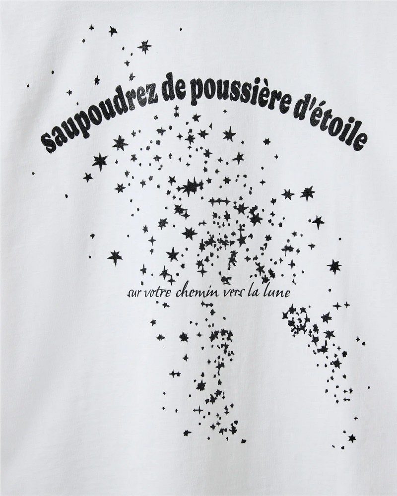 • Na zadní straně hvězdičky, text "Sprinkle with stardust" a menší nápis "on your way to the moon"