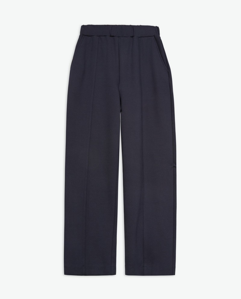 Pletené kalhoty s krátkým rukávem. Směs viskózy. Bez zapínání. Elastický pas. Svislý ozdobný šev. Dvě boční kapsy.