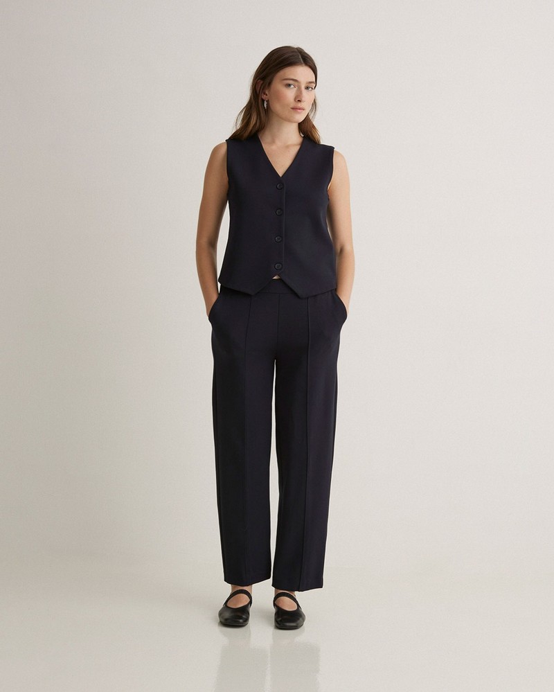 Tmavě modré pletené kalhoty s krátkým rukávem