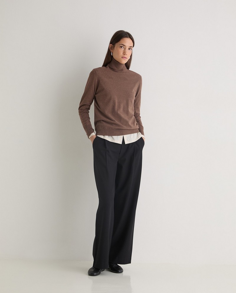 Rolák. Směs viskózy. Regular střih. Dlouhé rukávy. Žebrované detaily.
