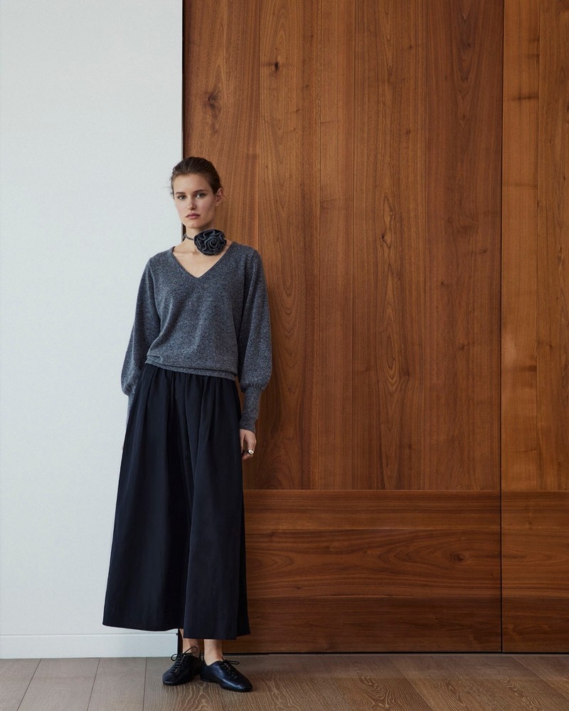Antracitový svetr z vlněné směsi s květinovým vzorem