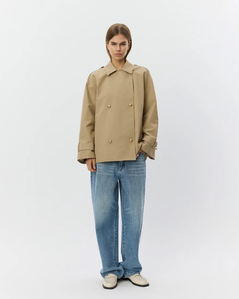 KRÁTKÝ TRENČKOVÝ KABÁT ADRIASW - Velbloudí barva