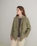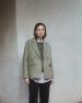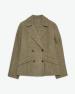 Krátká ručně šitá dvouřadá bunda. Oboustranná směs vlny a recyklovaných vláken. Bez podšívky. Regular střih. Klopy. Dlouhé rukávy. Dvouřadé zapínání. Dvě přední kapsy s klopou.