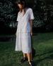 Dvě zadní nakládané kapsy s knoflíky z želvoviny. Poutka na pásek. Květinový výšivkový detail na lemu. Délka: 48 cm (velikost S).