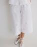 Směs bavlny a lnu. Středně vysoký pas, zkrácený střih. Podšívka. Boční kapsy a přední zapínání na zip a knoflík.