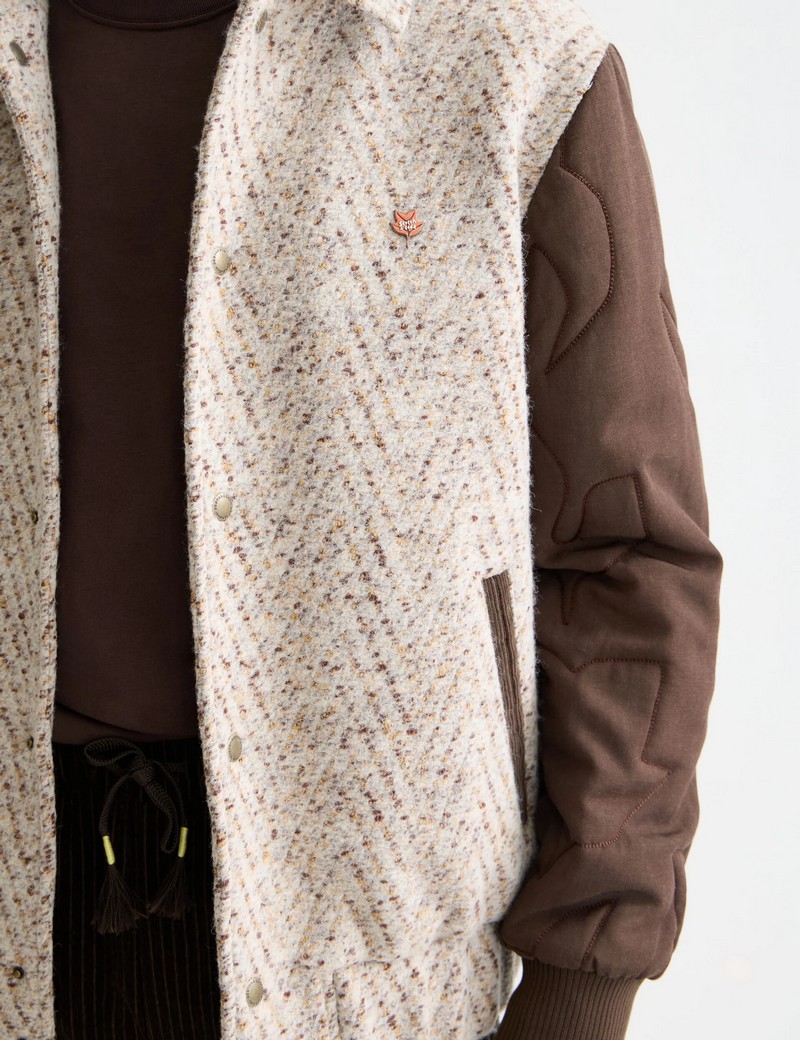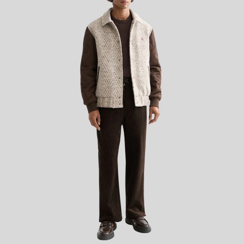 Scotch & Soda Sportovní bunda S&S Varsity Taupe Melange (šedohnědá směs) Běžná velikost Univerzitní / bomber bunda Zapínání na patentky Žebrované manžety límec, lem nášivka s logem/nápisem