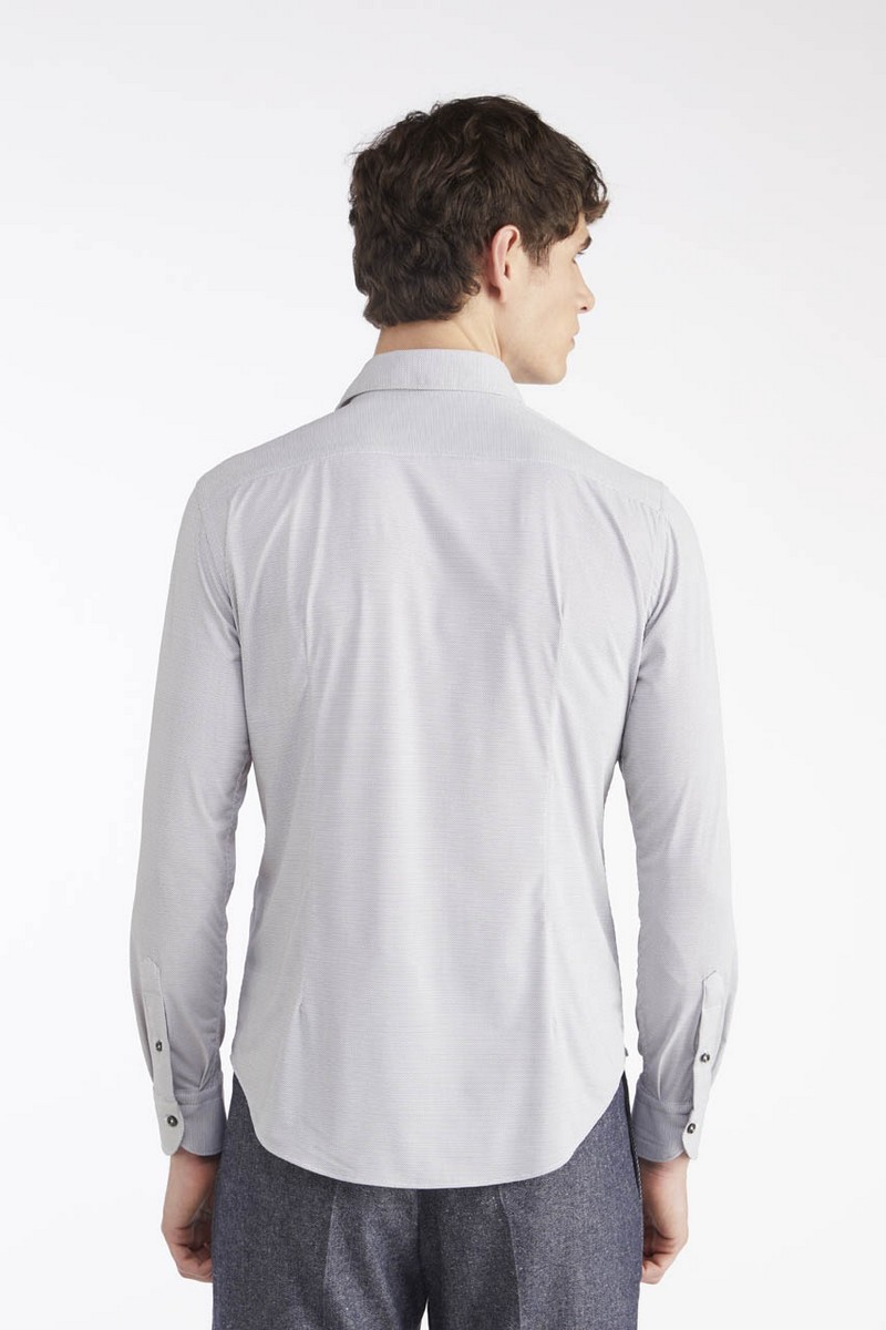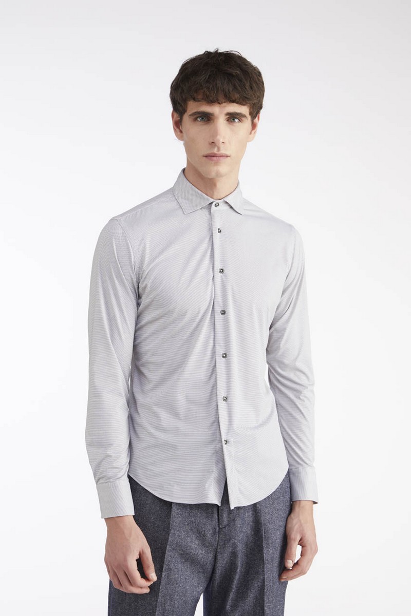 Košile z strečové tkaniny s potiskem, pohodlná, prodyšná a nežehlivá. Má francouzský límec s klopami, dlouhé rukávy a zapínání na knoflíky vpředu. Ideální pro elegantní a zároveň praktický vzhled.