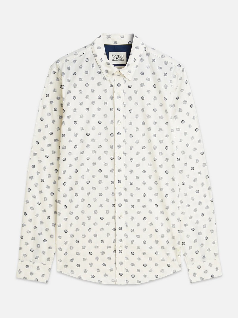 Úzká košile z popelínu s mikrotiskem, která dodává elegantní a rafinovaný vzhled.