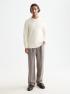 Plisované chino kalhoty baggy střihu z barvené příze s motivem rybí kosti, zakončené sklady a zavazováním.