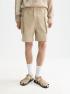 Bermudy s kapsami z bavlněné směsi, prané, širokého střihu a čistého, moderního vzhledu.