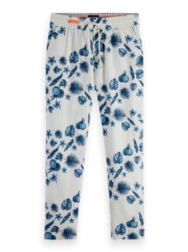 Volnočasové kalhoty s celoplošným výrazným potiskem.