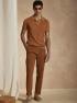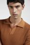 Bavlněné pletené polo tričko s žebrovaným předním dílem, který dodává tričku texturu a charakter. Krátký rukáv, límeček bez knoflíků a žebrované detaily ve spodní části a na rukávech.