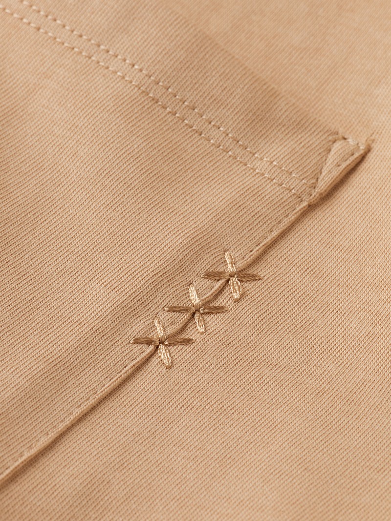Toto tričko volného střihu má přední kapsu s jemnou výšivkou 3 křížků, která nabízí čistý a decentní vzhled.