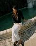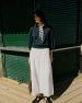 Dlouhá bílá sukně. Vyrobeno ze 100% konopí. Regular střih. Boční zapínání na zip. Skládaný detail v bocích. Délka: 88 cm (velikost S).