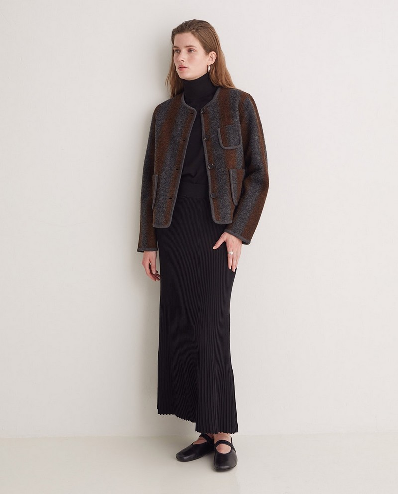 Skládaná midi sukně. Směs viskózy. Bez zapínání. Kontrastní elastický pas.