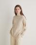 Svetr vyrobený z vlny RWS a recyklovaných vláken. Regular střih. Vysoký límec. Dlouhé rukávy. Bambulky. Boční rozparky. Žebrované detaily.