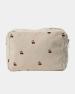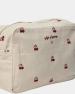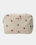 Toaletní taška z bavlny krémové barvy s malým potiskem třešní a logem 'Sofie Schnoor'.