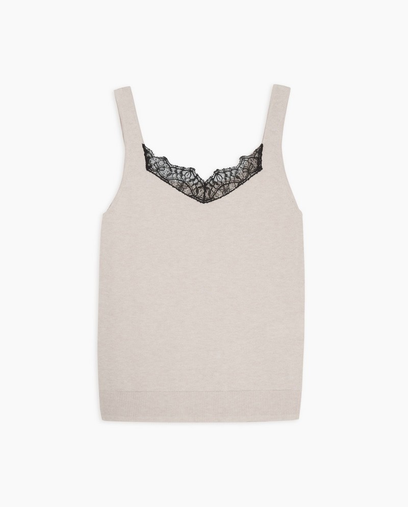 Tílko s krajkou v ecru barvě z bavlny a vlny