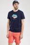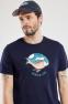 Všimněte si sítotisku tohoto trička, které má obnošený vzhled, jakoby popraskané působením mořské vody a času.