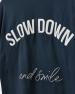 • Zadní strana: Výšivka s textem „zpomal a usměj se“