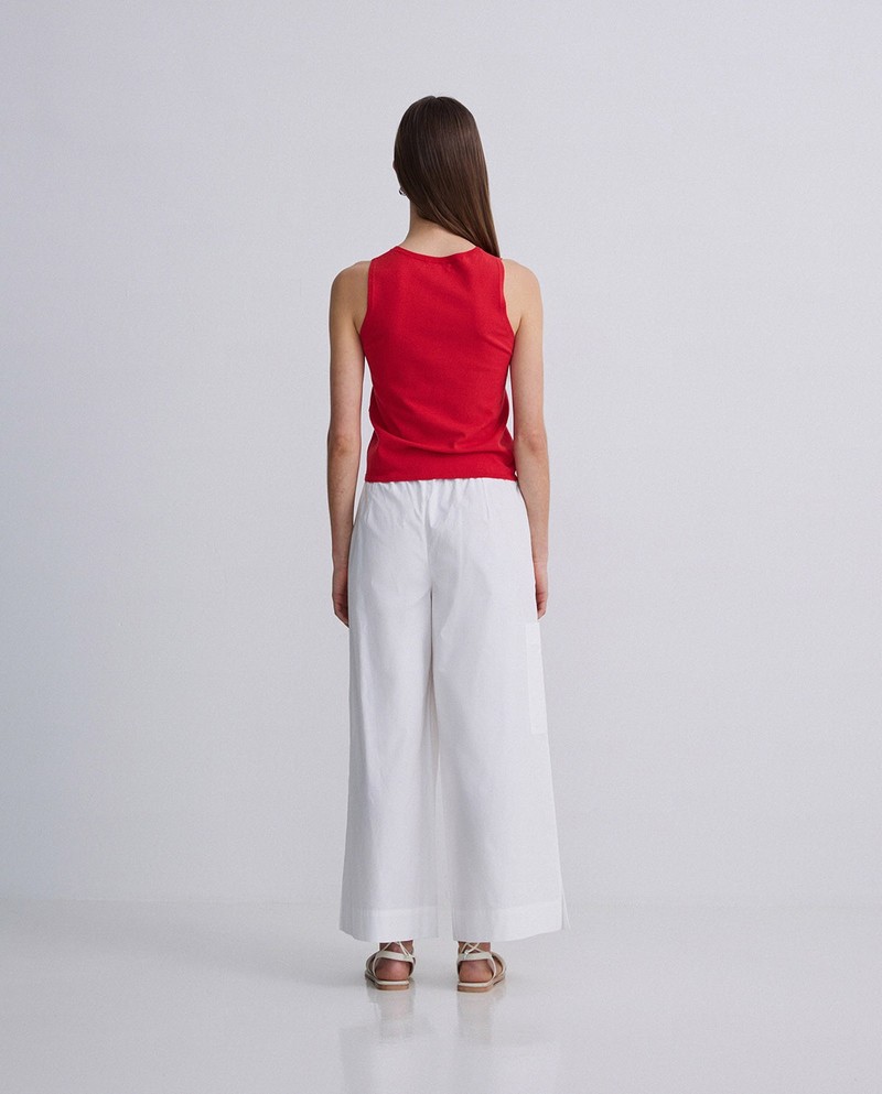 Viskózový top. Plochý úplet. Kulatý výstřih. Bez rukávů. Žebrované zakončení.