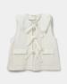 Bílá vesta bez rukávů se strukturovaným vzorem v látce a límečkem Peter Pan s nařaseným okrajem.