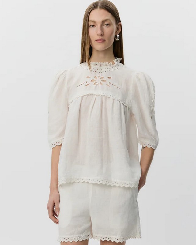 VYŠÍVANÝ KRAJKOVÝ TOP MAIASW - Krémově bílý