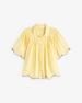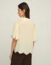 Halenka vanilkové barvy. Volný střih. Viskózový žoržet. Košilový límec. Splývavé rukávy ve stylu peleríny. Zapínání na knoflíky. Sklady na živůtku a rukávech. Vyšívané detaily na rukávech a lemu. Délka od ramene: 58 cm (velikost S).